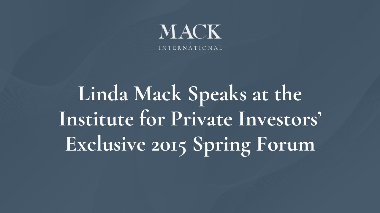Linda C. Mack, Founder and President of Mack International, will present the ‘Building a Family Office’ session at the exclusive Institute for Private Investors’ 2015 Spring Forum, May 20-21 in New York.